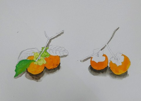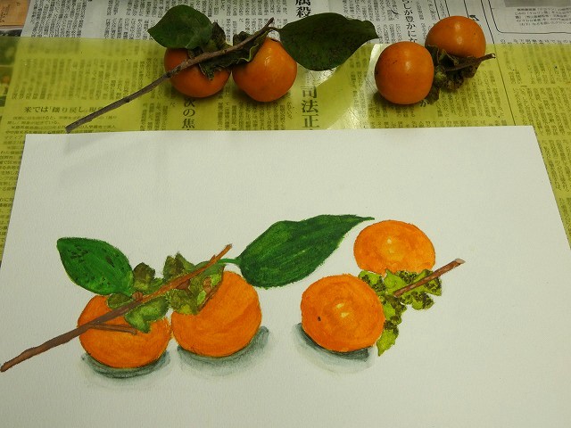 2025年9月29日(月)「自分の手の像」「柿の実の写生」