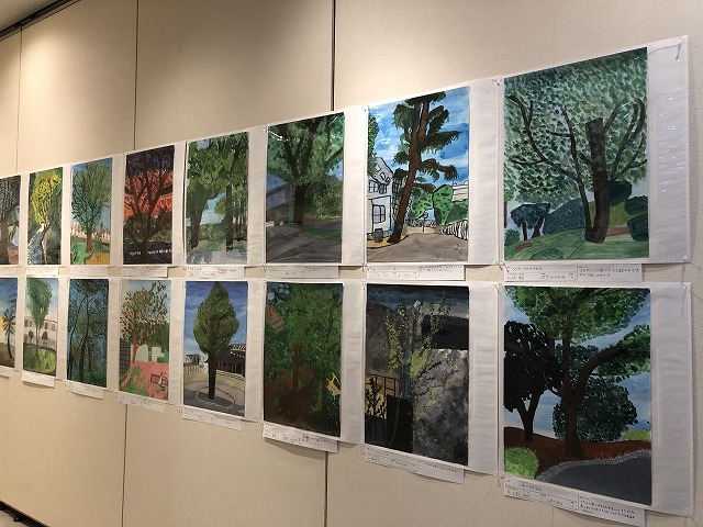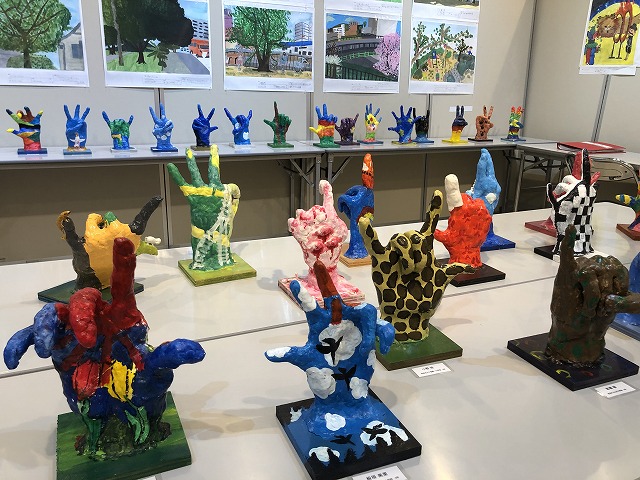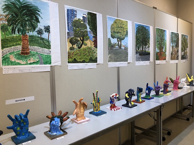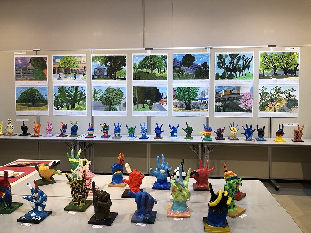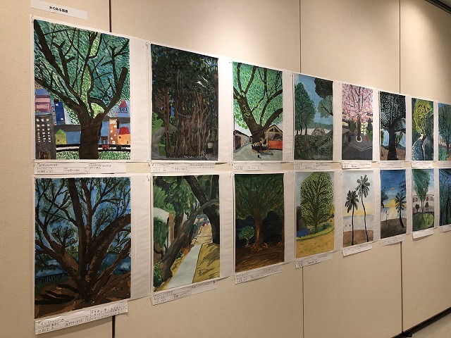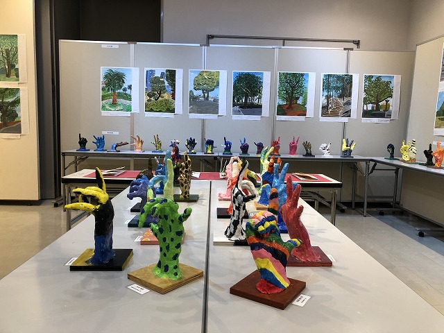 またこの1年間は、ガジュマル、アジサイ、柿など季節の植物の写生画を多く描きました。「自分の手の像」では、人間の手の様々な形のおもしろさ、また自由に着彩したユニークな造形を楽しんでいただけると思います。