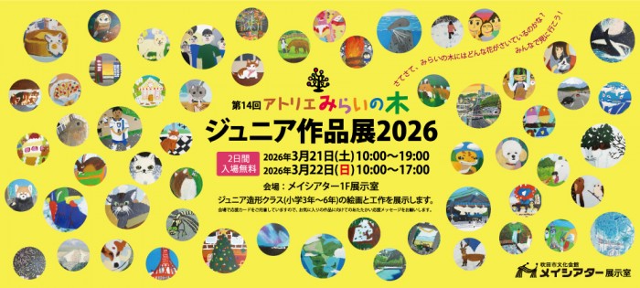 第14回アトリエみらいの木ジュニア作品展2026には、公私共にご多忙の中、多くの方々に会場へ足をお運びいただき、誠にありがとうございました。